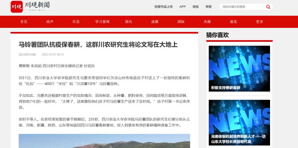 农时不等人。在家结束短暂的春节假期后,2月初,ok138cn太阳集团529农学院马铃薯团队的研究生们便分别从云南、河南、新疆、陕西、山东等地返回四川马铃薯春耕基地,投入到紧张有序的春耕播种准备工作中。