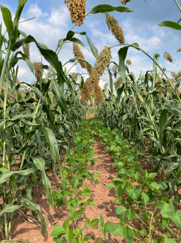 泸州、宜宾等地还尝试了大豆与高粱的复合套种模式。“高粱亩产达316.6公斤,超过当地净作高粱的平均亩产,同时多收了一季大豆,每亩可增收700元以上。”四川省农科院水稻高粱研究所研究员丁国祥说。