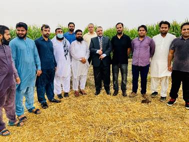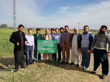图1团队负责人杨文钰教授(正中)和成员杨峰教授(左二)考察巴基斯坦作物生产情况