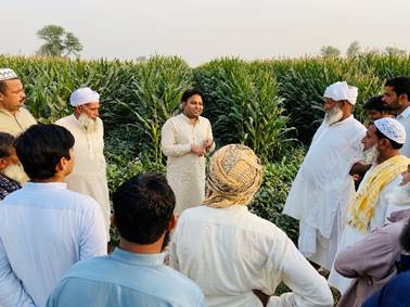 图3 The Islamia University of Bahawalpur校长考察玉米大豆带状复合种植作物长势