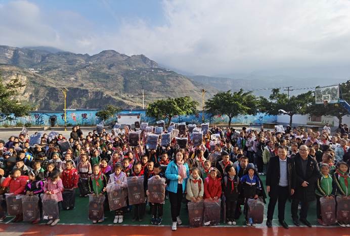 仪式上,顾吉民首先代表千万贯乡政府热烈欢迎川农大和捐资单位代表的到来,并大力感谢学院及企业长期以来对千万贯乡中心校师生的关爱和帮助。黎明艳代表农学院发言,她表示农学院与四川瑞进特科技有限公司携手共同资助雷波困难学子已有三年时间,她鼓励同学们能用知识改变命运,走出大山看到更广阔的世界,并立志投身乡村振兴的伟大事业中,把家乡建设得更美丽。黎明艳一行为20名品学兼优的家庭经济困难学生颁发“川农-瑞进特励志奖学金”和奖品,并为中心小学的450名学生和20余名教师逐一送上书包和水杯等慰问品,共同祝愿学生们能够快乐成长,用知识改变命运,拥抱更美好的世界。