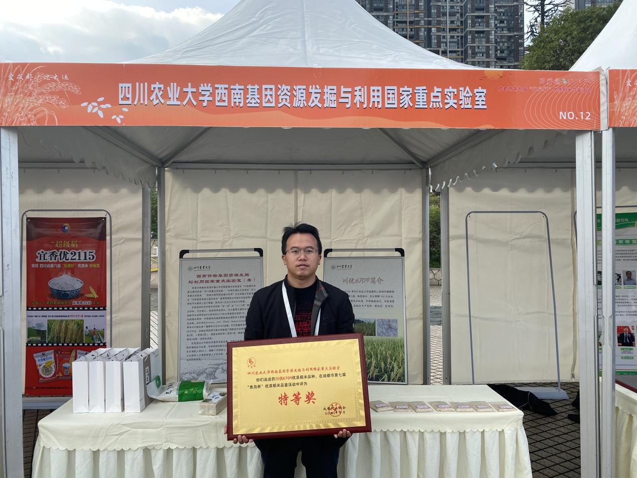 本届“鱼凫杯”共吸引省内外104个水稻品种报名参赛,经过田间种植初赛,有40个品种进入决赛,再经过现场专家组品鉴,两轮选拔,共评选出35个优质稻米品种,其中2个品种获钻石奖、5个品种获金奖、10个品种获银奖、18个品种获铜奖。我校农学院黄富教授团队主持育成的“锦城优雅禾”、国家重点实验室陈学伟教授团队主持育成的“川优6709”获得钻石奖。另有7个由我校水稻研究所、农学院主持选育的优质新品种获奖,其中“川优1098”获金奖,“蜀优730”获银奖,“荃9优2117”、“川优2275”、“川农7优58”、“川优817”、“锦城优蓁禾”获铜奖。我校主持育成的高抗优质超级稻“宜香优2115”已连续四届作为成都市“鱼凫杯”优质稻米品鉴对照品种。