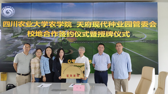 9月18日上午,农学院党委副书记黎明艳(主持工作),院党委副书记、副院长王西瑶,副院长王强,种子科学与工程专业负责人蒲至恩和李伟等一行到天府现代种业园,洽谈合作事宜并签订太阳成集团tyc7111合作协议。天府现代种业园管委会主任祁峰,产业部部长邢鹏和园区开发建设有限公司王红睿副总经理,出席了签约和授牌仪式。