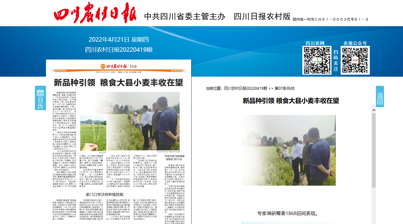 “下一步将通过田间生产示范及宣传推广,将蜀麦830等新品种打造成西南地区优质高产、具有代表性的小麦品种之一。”相关公司负责人告诉记者。