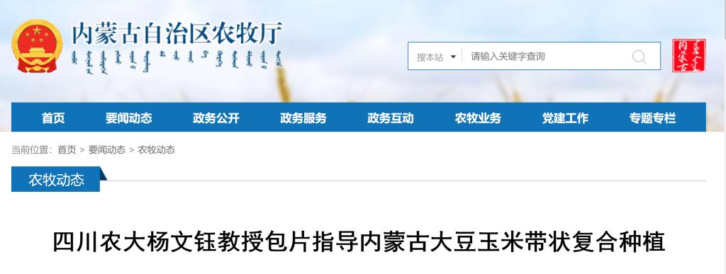 (内蒙古自治区人民政府网站)四川农大杨文钰教授包片指导内蒙古大豆玉米带状复合种植