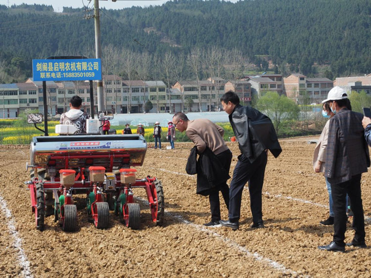 今年,玉米大豆带状复合种植技术写入2022年中央一号文件。位于川东北的剑阁县是粮油大县,去年,剑阁县的大豆种植面积和产量居广元市第一。公兴镇地处剑阁西南边陲,是剑南粮油现代农业园区的一部分。2022年,公兴镇规划种植面积1万亩大豆玉米带状复合种植示范区。3月10日,剑阁县大豆玉米带状复合种植暨春耕生产现场会就在这里召开。
