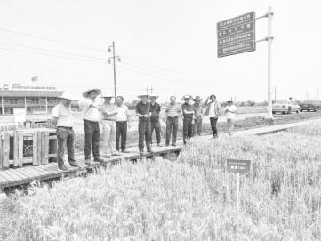 小麦专家在崇州市观摩小麦新品种长势。