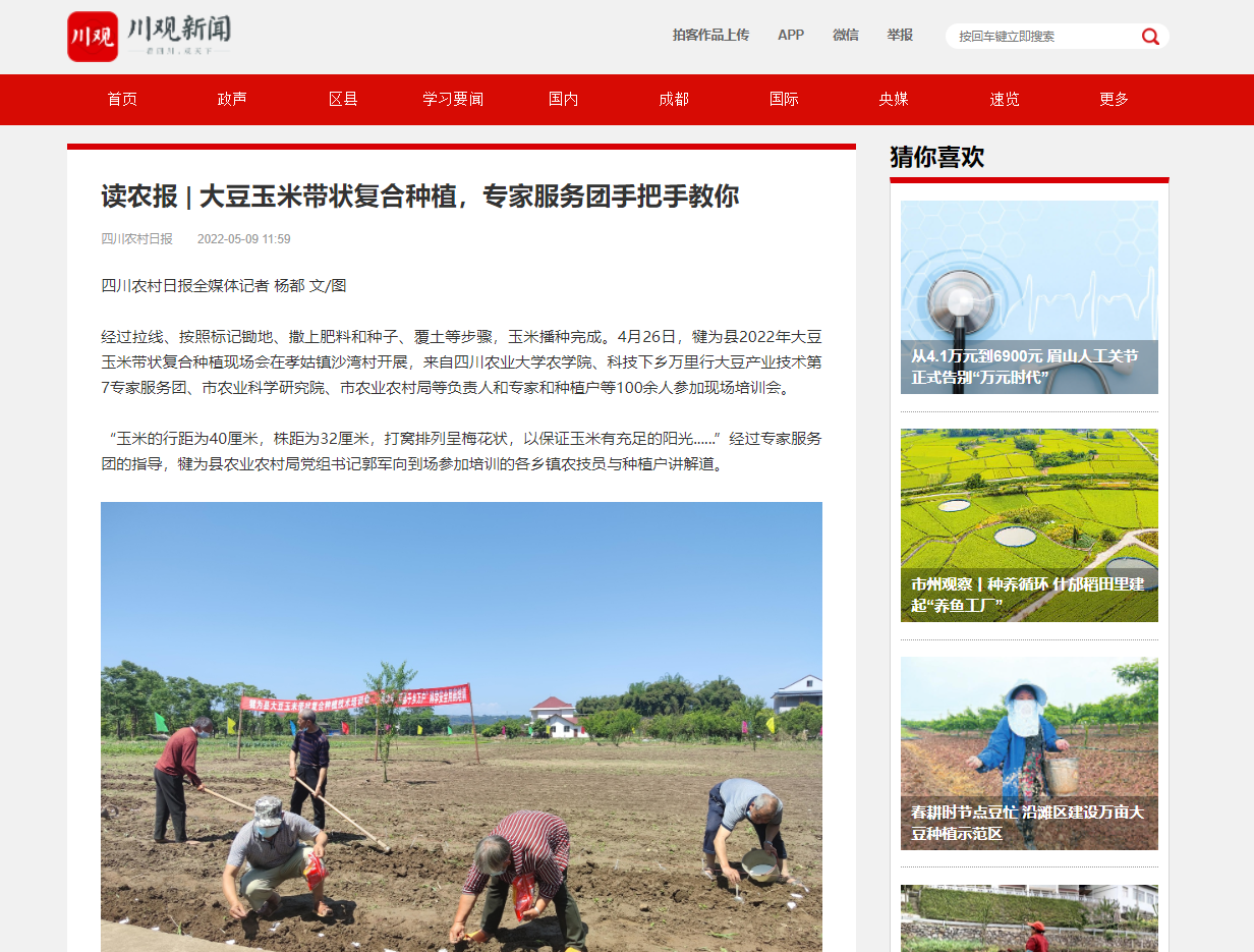 原文链接:读农报 | 大豆玉米带状复合种植,专家服务团手把手教你 - 川观新闻 (scol.com.cn)