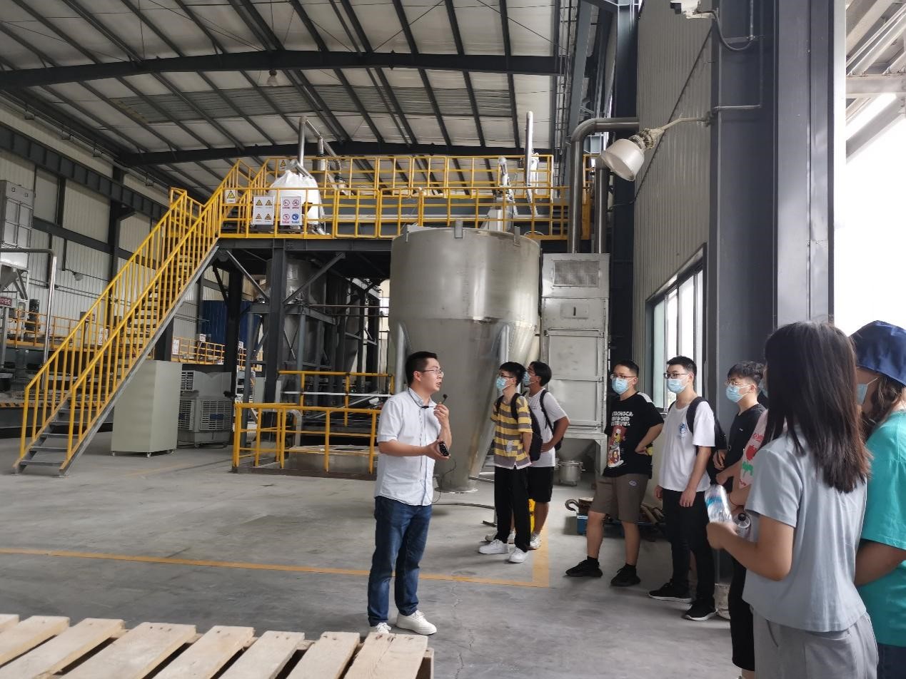作为我国植物生长调节剂的第一品牌,国光拥有一整条标准化的植物生长调节剂产业链。在人资部张兴主任带领下,同学们依次参观了生产区的原材料仓库、加工车间、分装车间、成品仓库、原药合成车间等,观摩了一包包农药产品由企业生产到调配运输到全国各地的过程,感受了高度自动化、智能化的流水线生产方式。