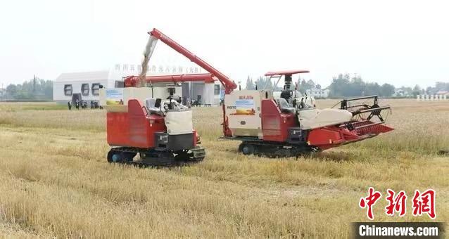 无人驾驶收割机在四川“五良”融合无人农场(大邑)收割小麦。 西华大学供图