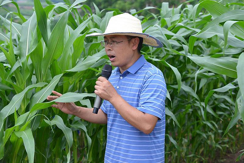 近日,四川自贡市荣县双石镇黄家村一块绿油油的玉米地里,头戴草帽的ok138cn太阳集团529教授刘卫国,在现场培训玉米套种大豆“选配品种、扩间增光、缩株保密、科学施肥”四项核心技术。接受培训的是荣县县委副书记胡伟峰和全县各镇(街)党委书记、全县农技员等。现场,三种不同型号的机械现场演示了玉米空行地里播种。