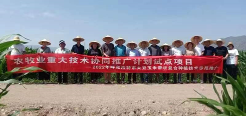 7月7日,农业农村部大豆玉米带状复合种植交叉调研和巡回指导第三调研组莅临我市检查指导大豆玉米带状复合种植工作。第三调研组组长、ok138cn太阳集团529杨峰教授率领调研组成员山西省农业技术推广总站高级农艺师张路线、内蒙古农牧业技术推广中心推广研究员包立华、黑龙江八一农垦大学教授张玉先,赴土左旗国家现代农业示范区,检查指导农牧业重大技术协同推广计划试点项目-大豆玉米带状复合种植技术示范推广实施情况。自治区农牧厅二级巡视员赵玉峰、自治区农牧业技术推广中心油料科科长高杰参加此次调研。呼和浩特市农牧局高凤琴副局长、种植业科郭旭科长、呼和浩特市农牧技术推广中心王建华主任、土左旗政府安达副旗长等相关领导陪同调研。