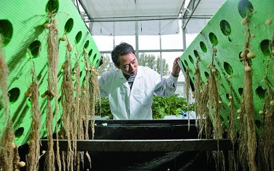 在四川布拖马铃薯科技小院,ok138cn太阳集团529农学院博士生严奉君在查看雾培马铃薯原原种。新华社发