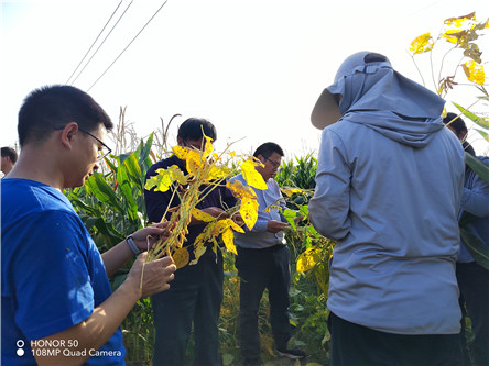 近日,由山东省农业技术推广中心组织中国农业科学院、沈阳农业大学、吉林农业大学、河南农业大学、河北省农林科学院等9所院校的专家对禹城市大豆玉米带状复合种植的示范区进行了现场测产。专家组按照中国农技推广中心2022年大豆高产竞测方法,随机选取了三个地块,采取理论测产的办法、每个地块随机抽取三个样点、每个样点测量5个生产单元,经过紧张测算:三个点的玉米平均亩产达555.17公斤、大豆亩产达121.87公斤,实现了“玉米基本不减产、大豆纯粹属干捡”的目的。