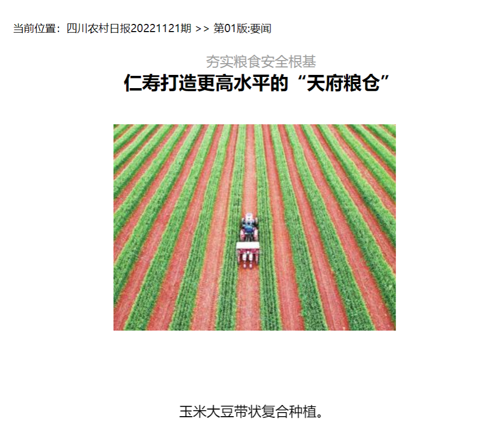 “党的二十大报告提出,要全方位夯实粮食安全根基。”仁寿县农业农村局相关负责人说,近年来,仁寿县始终把确保粮食安全作为“三农”工作的首要任务,多措并举,保障粮食稳产增产,打造新时代更高水平的“天府粮仓”。