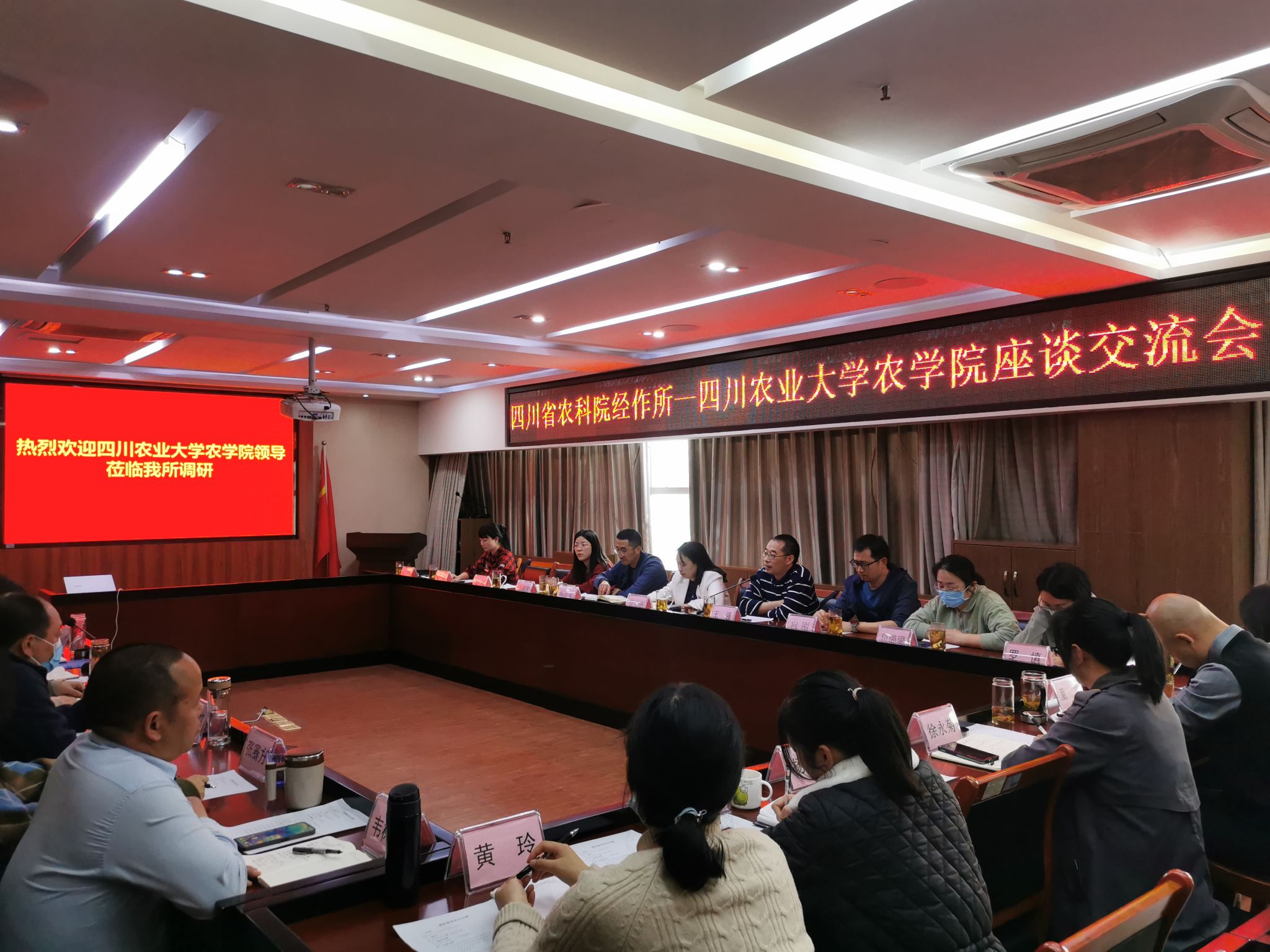 为持续深化开拓就业市场,落实《ok138cn太阳集团5292023年“访企拓岗促就业”专项行动实施方案》,3月9日下午,农学院党委书记黎明艳率农学院副院长王强、党委办公室主任兼团委书记陈红星、行政办公室主任向刚、以及党委行政办公室老师等一行11人到四川省农科院经作所座谈交流,经作所党委书记张小军,经作所党委副书记、所长叶鹏盛,经作所党委副书记、副所长张超,经作所纪委书记岳福良以及经作所各部门负责人参加座谈交流。经作所党委书记张小军主持会议。