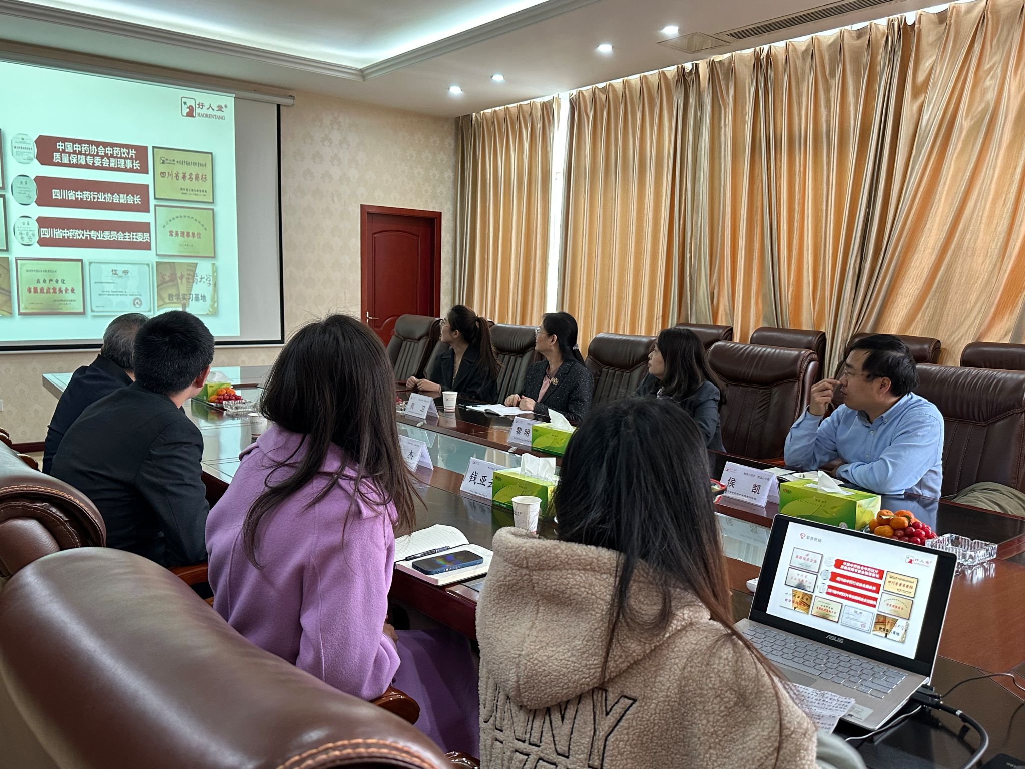 座谈会上,大家首先通过企业宣传PPT对四川省中药饮片有限责任公司在中草药种植、中药饮片研发、生产、销售等全产业链发展情况进行了全面了解,在公司副总经理、优秀校友孟杰的带领下,参观了公司中药标本文化馆、实验检验室、中药全程质量追溯平台等。孟杰对来自母校的老师们表示热烈欢迎,强调四川省中药饮片有限责任公司与川农大有着深厚的渊源,多位在岗人员来自于川农大,且大多已成为本单位的骨干,为四川省中药饮片有限责任公司的快速创新发展作出了重要贡献,希望未来有更多川农优秀学子加盟。黎明艳介绍了农学院近些年的学科建设、专业发展与太阳成集团tyc7111等情况,表示希望通过对优秀校友在所企业进行走访调研,了解校友工作及发展情况,进一步了解企业用人需求,听取用人单位对太阳成集团tyc7111方面的建议,探索“校企合作育人”的有效路径。