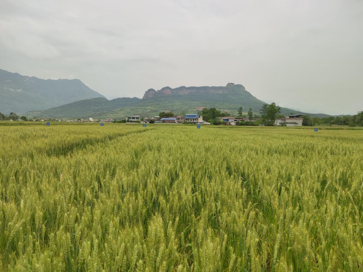窦圌山脚下风吹麦浪,当地小麦进入灌浆阶段。