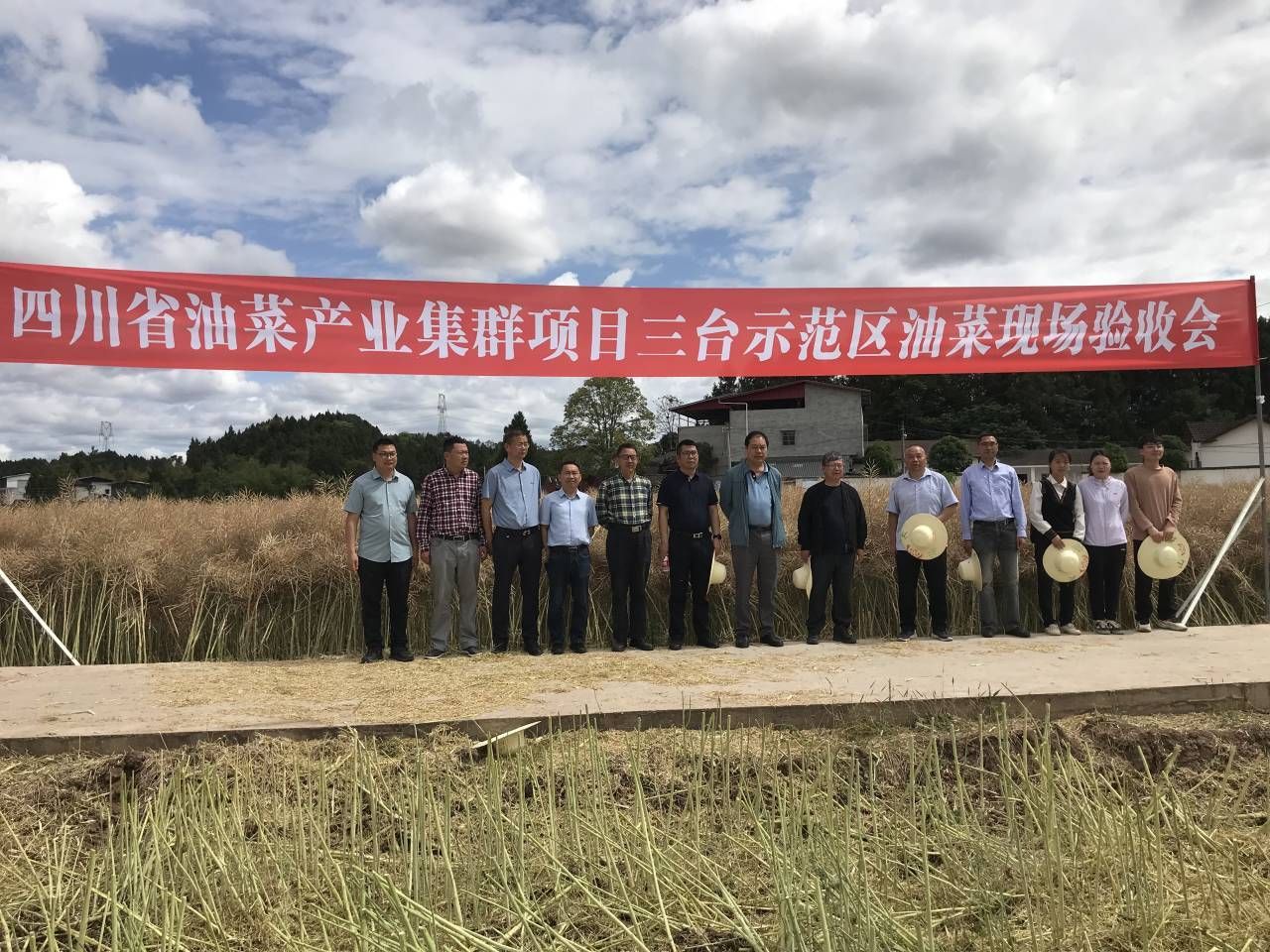 当天,在三台县建平镇寺垭口村举行的四川油菜产业集群项目三台示范区油菜现场验收会现场,艳阳高照,成熟的油菜一地金黄。