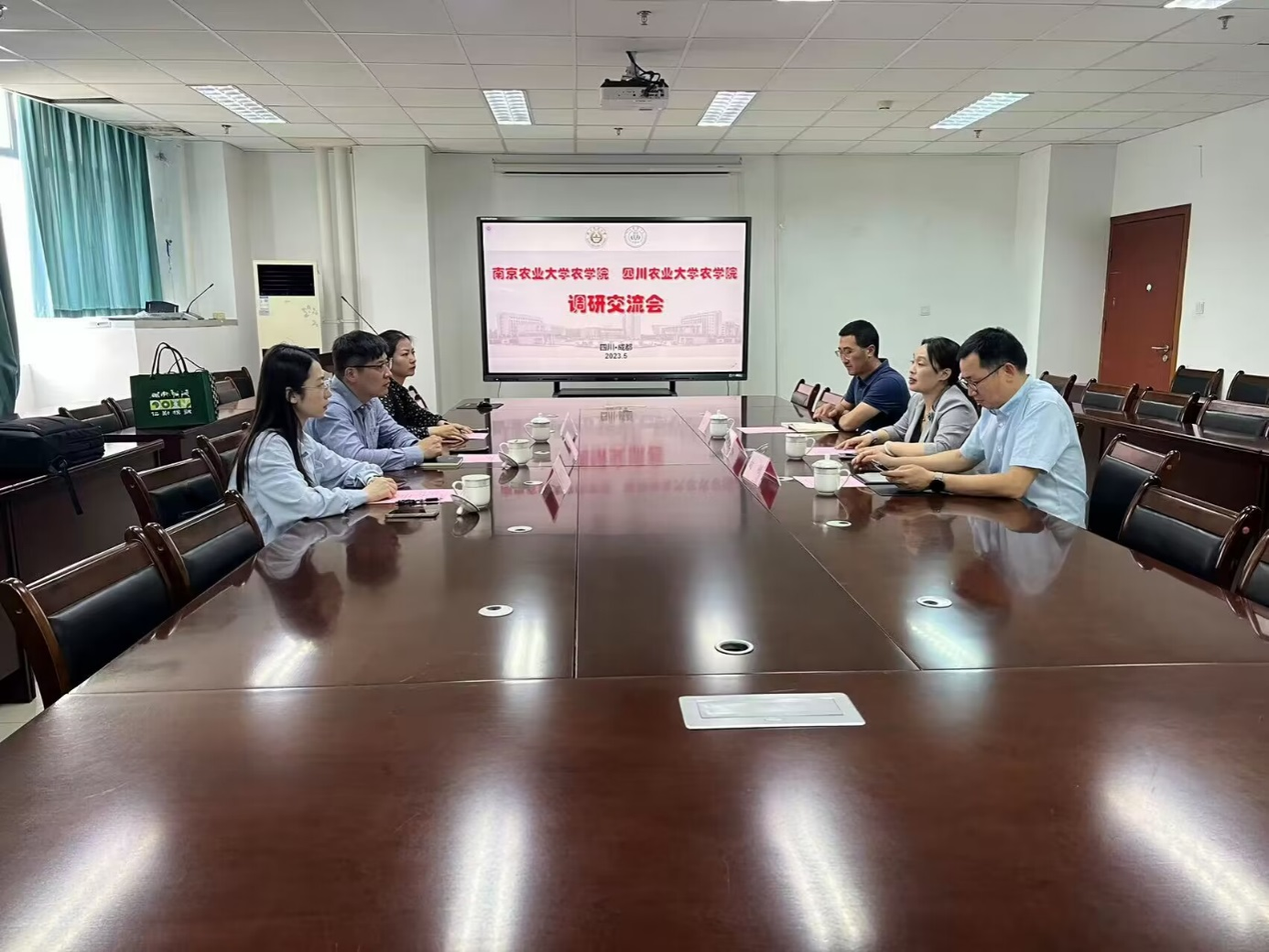 2023年5月26日,南京农业大学农学院党委书记庄森一行三人到农学院调研交流。农学院党委书记黎明艳、行政办主任向刚、党委办公室主任兼团委书记陈红星参加了交流会。