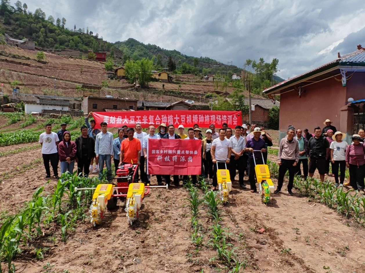 此前,雍太文团队一行曾多次前往当地,引进适宜当地生长的大豆新品种及地方品种26个,建立2个示范基地,引入成都大美种业、先正达等公司以保障种子、拌种剂、除草剂需求,筛选出适宜当地大豆玉米带状间作的大豆品种齐黄34,并在大豆玉米种植、收获、病虫草害等田间管理方面,给种植示范户吉付尔西提供技术指导。