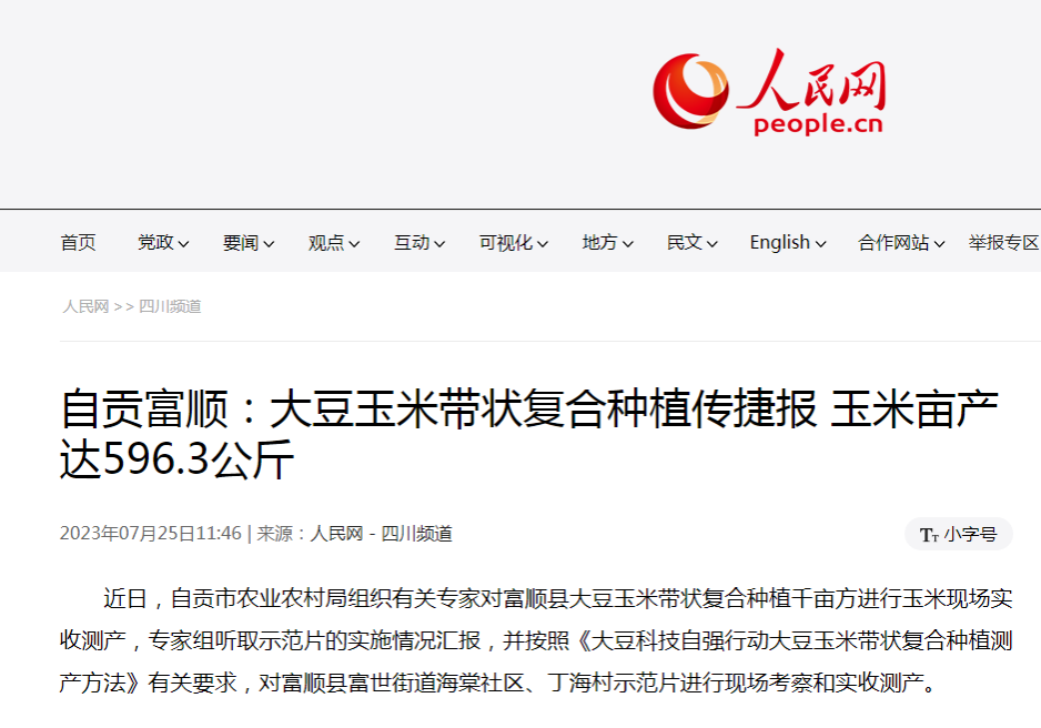 专家组认为,富顺县富世街道丁海村、海棠村大豆玉米带状复合种植示范片,采取统一播期、统一品种、统一田间除草、统一追肥、统一病虫防治“五统一措施”,在3—5月份遭遇干旱气候影响下,仍取得良好成效,此模式具有抗旱增粮的显著效果。