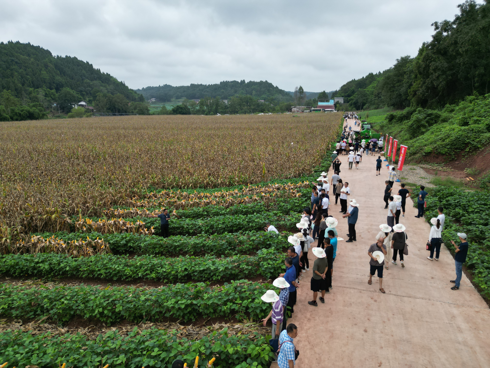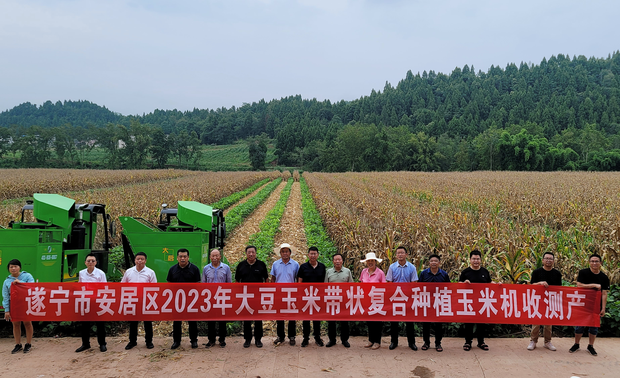 盛夏时节,玉米金黄,天府大地一派丰收景象。8月6日,全省大豆玉米带状复合种植现场观摩培训及玉米机收测产会在遂宁市安居区成功举办。来自全国农业技术推广服务中心、中国农业科学院、吉林省农业科学院、四川省农业科学院的专家以及全省15个地市的农技干部与种植大户、校地企业代表、媒体记者等百余人,观摩考察了由我校和省农业技术推广总站、安居区人民政府共建的“全国(遂宁市安居区)大豆玉米带状复合种植示范片”。全国农业技术推广服务中心科长蒋静怡、省农业农村厅种植业与农药肥料处处长刘代银、省农业科学院副院长刘永红出席开幕式,学校科技处副处长杜俊波、农学院副院长杨峰,安居区区委常委、宣传部部长谭久宏等领导和专家参加会议并致辞。