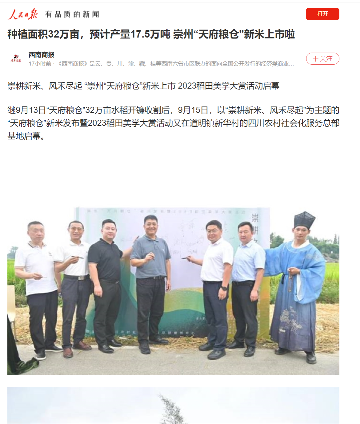 崇耕新米、风禾尽起 “崇州“天府粮仓”新米上市 2023稻田美学大赏活动启幕