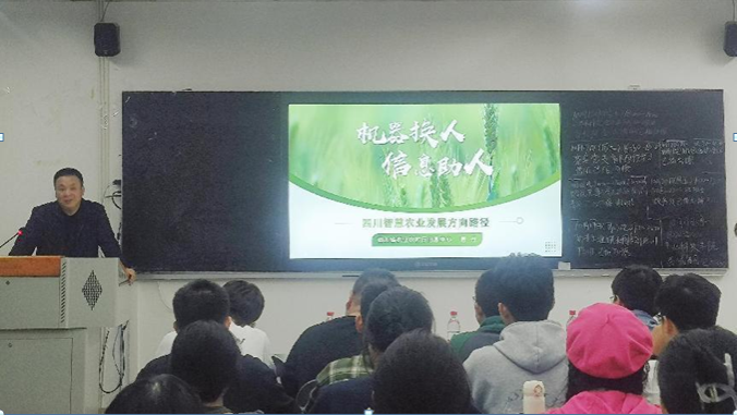 随后,唐丹以“机器换人、信息助人”为主题,从智慧农业的概念,智慧农业发展的必然性和迫切性,国内外发展现状,四川省智慧农业应用场景案例以及通过技术、管理和商务等模式对智慧农业未来发展进行了展望。报告后,师生就智慧农业的发展和应用与唐丹开展了深入的交流和讨论,对四川省智慧农业的发展现状和应用有了更深入的了解,真切领会了习近平总书记“四川要在新时代打造更高水平的‘天府粮仓’”指示要求,助力“四川天府粮仓数字中心”建设。