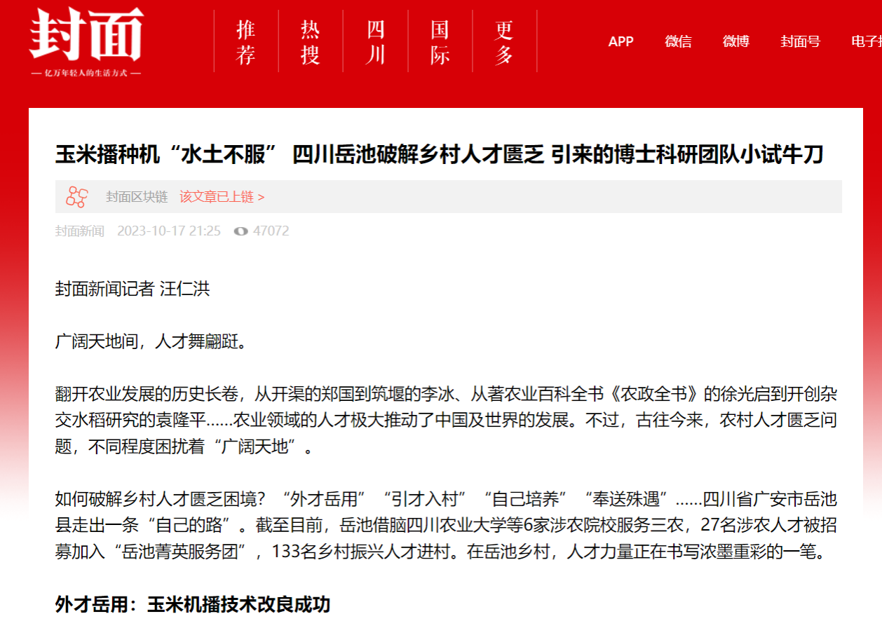 玉米机播技术改良成功,是岳池“外才岳用”的一个缩影。岳池县在注重引进县域外高层次人才的同时,还以“不求所有、但求所用”的原则,让更多“外才”变为“岳用”。