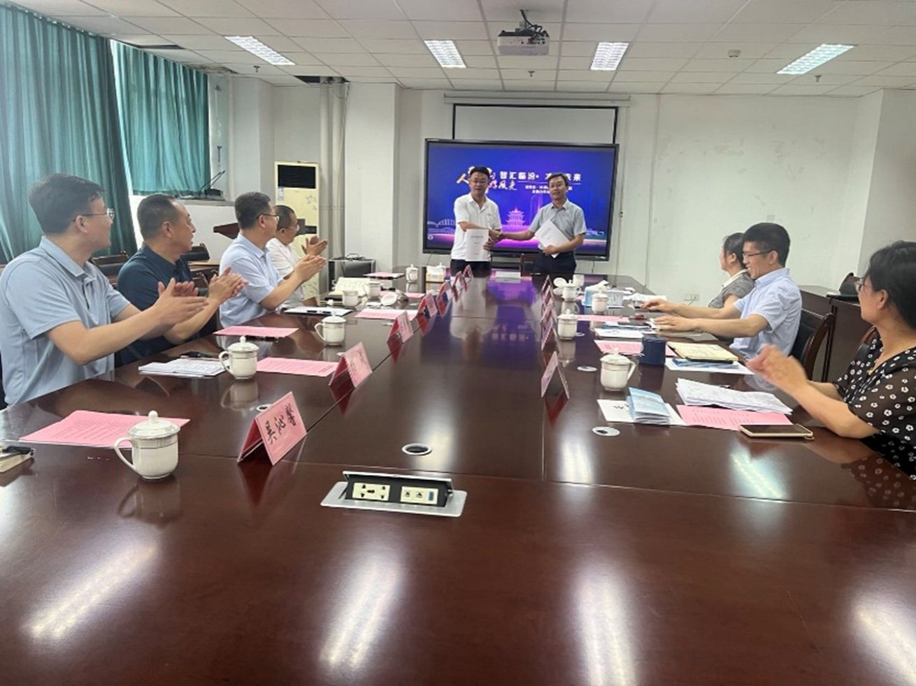 会议最后,杨峰和申俊伟分别代表农学院和安泽县签署了太阳成集团tyc7111合作框架协议。唐城和李建平共同为“安泽县招才引智工作站”揭牌。