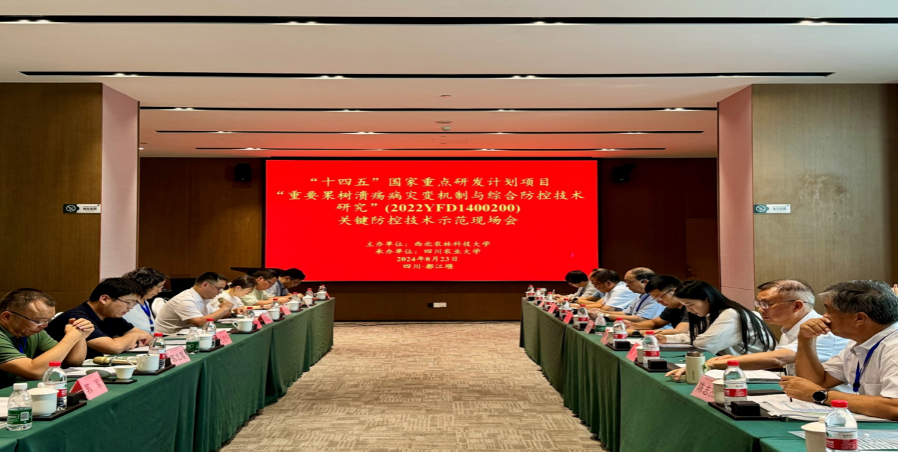2024年8月22-24日,由西北农林科技大学主办,我校农学院承办的“十四五”国家重点研发计划项目“重要果树溃疡病灾变机制与综合防控技术研究”关键防控技术示范现场会在都江堰市举行。来自农业农村部科技发展中心、四川省农业农村厅、陕西省植物保护工作总站、湖南省农业科学院等全国10余家单位的50余名代表参加了本次现场会。我校副校长王际睿,科技管理处处长田孟良,农学院院长王静、副院长杨峰,乡村振兴学院张敏教授及项目成员农学院龚国淑教授、陈华保教授参加了本次会议。