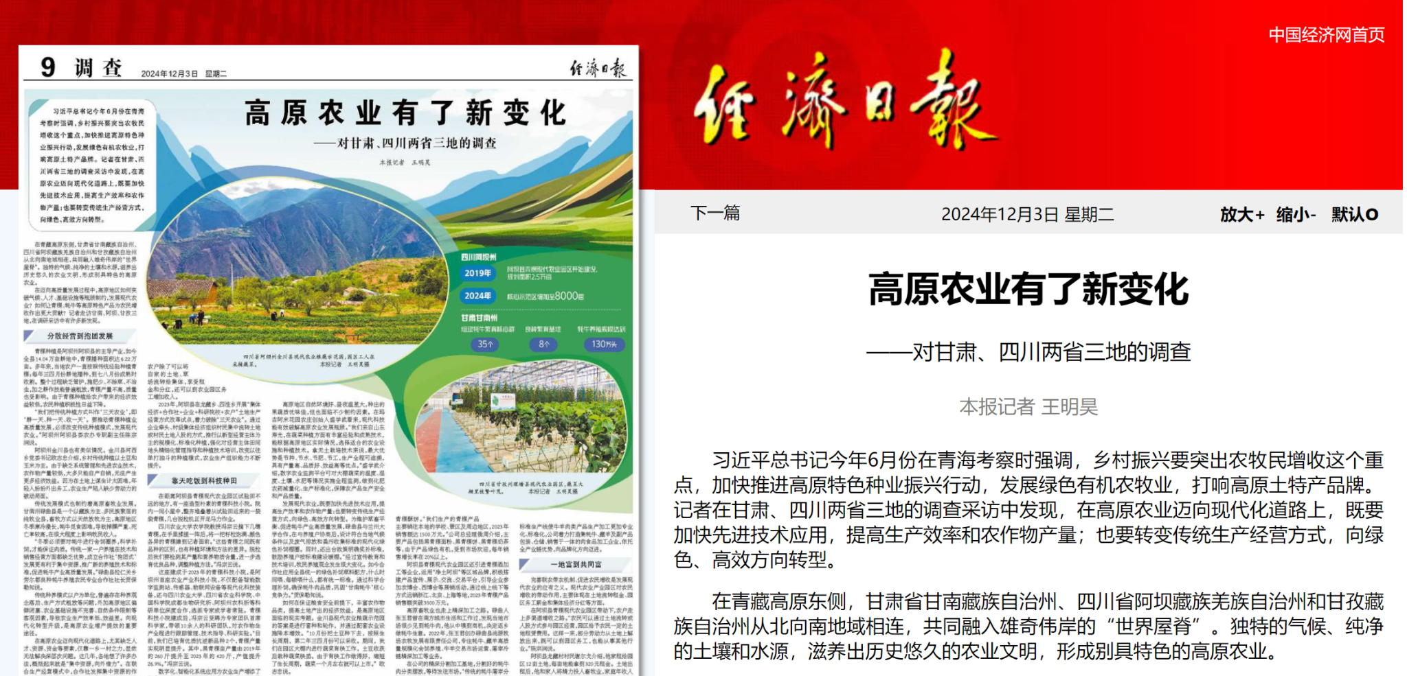 习近平总书记今年6月份在青海考察时强调,乡村振兴要突出农牧民增收这个重点,加快推进高原特色种业振兴行动,发展绿色有机农牧业,打响高原土特产品牌。记者在甘肃、四川两省三地的调查采访中发现,在高原农业迈向现代化道路上,既要加快先进技术应用,提高生产效率和农作物产量;也要转变传统生产经营方式,向绿色、高效方向转型。