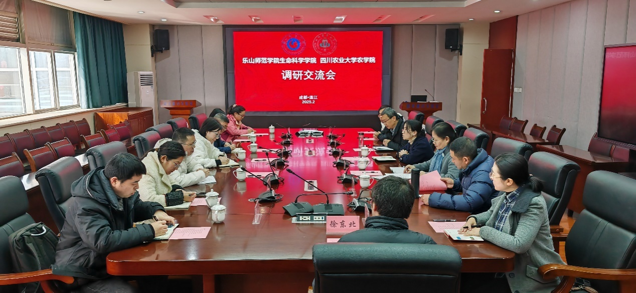 2025年2月26日,乐山师范学院生命科学学院院长刘芳带队,生命科学学院副院长代发问及学院相关教师7人赴我校农学院开展中草药栽培与鉴定专业调研交流。我校农学院王静院长以及特用植物生产学系全体教师参加研讨。会议由农学院副院长杨峰教授主持。