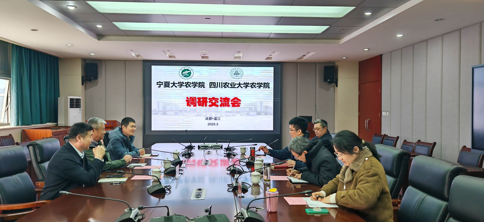 李培富对川农农学院的热情接待表示感谢,详细介绍了宁夏大学农学院的历史沿革与发展现状。宁夏大学农学院在旱作农业、盐碱地改良、特色作物育种等领域积累了丰富经验,农学专业为国家一流本科建设专业,作物栽培学与耕作学为自治区重点学科,近年来在小麦抗逆品种选育、枸杞功能成分研究等方面成果显著,期待与川农在优势学科互补、科研项目联合申报等方面开展务实合作。