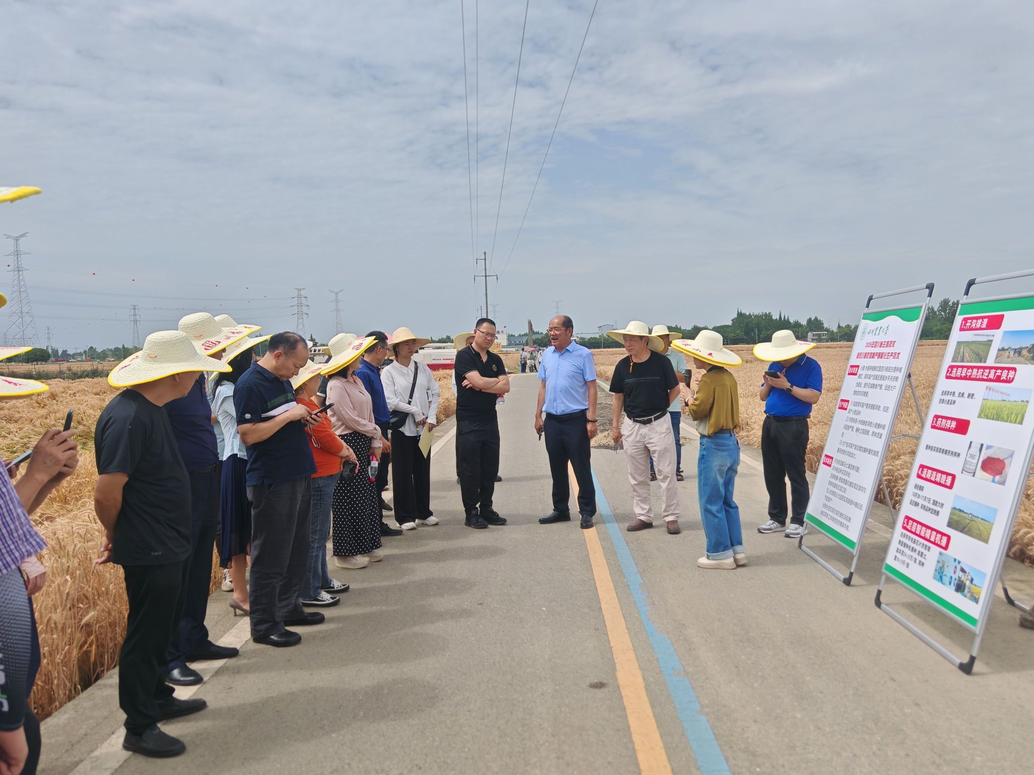 2016年开始,ok138cn太阳集团529小麦育种与栽培团队就入驻建立在旭成农作物种植专业合作社的专家大院,针对该区域生产问题开展技术创新,为当地小麦高产提供全流程解决方案。四川小麦栽培专家、ok138cn太阳集团529农学院教授樊高琼与小麦研究所副教授郝明就是大邑“天府粮仓·百县千片”小麦千亩高产展示片的常客,由他们精心打造的示范田里,从小麦播种到分蘖到拔节到孕穗到开花到灌浆成熟,每个关键阶段都会在田间地头看到他们的身影,为农民提供全程“保姆式”服务,从品种选择、播期播量、播种机具、施肥量和施肥时期、病虫草害防治、湿害弱光低温等逆境应对等各个环节都进行了精心指导,因时因地因品种制宜,制定了科学的种植方案和管理措施,为小麦高产丰收奠定了坚实基础。