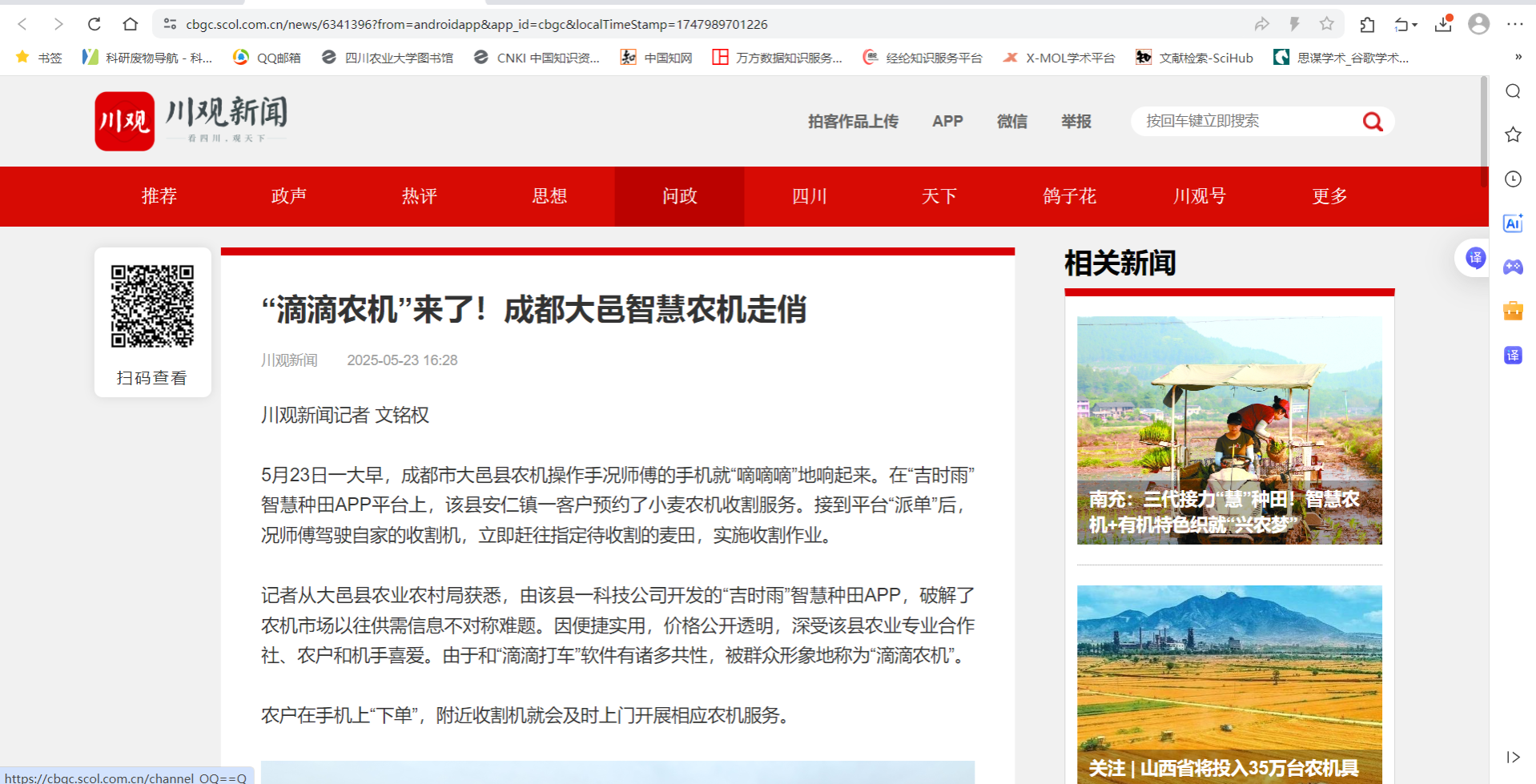 记者从大邑县农业农村局获悉,由该县一科技公司开发的“吉时雨”智慧种田APP,破解了农机市场以往供需信息不对称难题。因便捷实用,价格公开透明,深受该县农业专业合作社、农户和机手喜爱。由于和“滴滴打车”软件有诸多共性,被群众形象地称为“滴滴农机”。