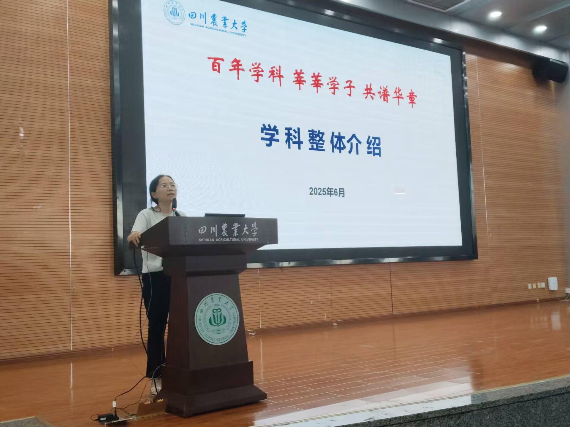在考研动员环节,院长王静教授回顾了学院百年学科发展历程,并从师资力量、科研平台、前沿技术、良种培育等六个维度,详细阐述了学院培养高层次创新人才的具体举措与显著成效。她强调,学院学科实力雄厚,为立志农业发展的学子提供了顶尖的研究平台和丰富的资源支持,已培养出大批杰出人才。