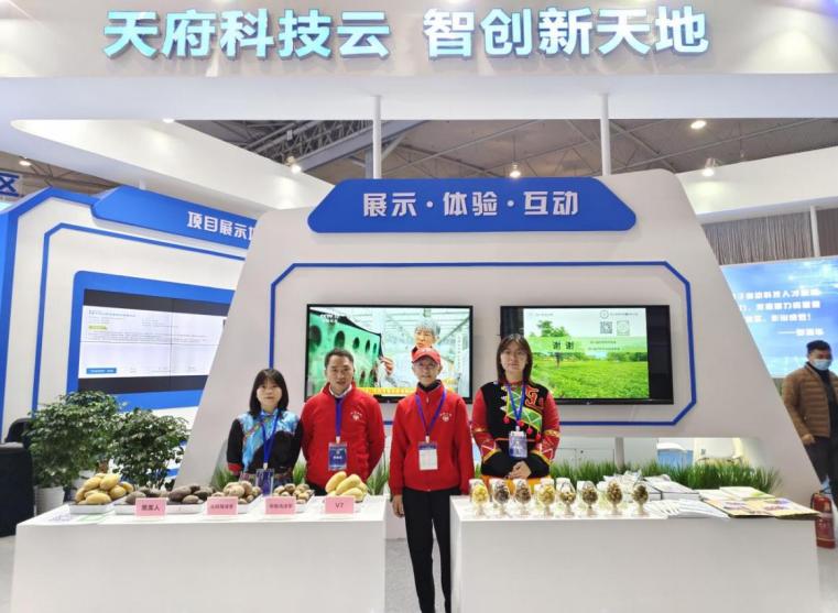 农学院“马铃薯产业关键技术”项目因创新了营养全、口感好、市场价高的特色马铃薯良种、良繁及优质高效高产栽培技术,与西南混作区马铃薯周年轮套作生产模式配套的种薯绿色轻简化壮芽调控技术、安全贮运控芽保鲜技术,以及通过科技小院、天府科技云平台进行技术推广示范与成果转化的模式,入选省级推介洽谈项目。马铃薯团队专家王西瑶教授、严奉君博士后,四川布拖马铃薯科技小院硕士生朱嘉心、刘渝代表团队参会,并在大会上进行了成果推荐、产品展示、路演宣讲,反响热烈,企业、合作社积极前来洽谈合作。中国科协党组副书记徐延豪、四川省人大常委会副主任包惠、四川省科协党组书记、副主席毛大付,四川省科协党组成员、副主席经戈等领导莅临马铃薯团队的场景式技术成果展示区巡视指导,并给予充分肯定和鼓励。