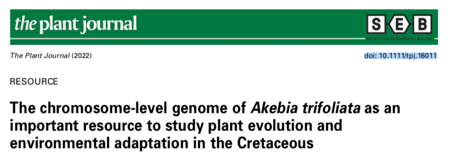 11月19日,国际著名期刊《The Plant Journal》(中科院分类一区top期刊)在线发表了题为“The chromosome-level genome ofAkebia trifoliataas an important resource to study plant evolution and environmental adaptation in the Cretaceous”(doi: 10.1111/tpj.16011)的研究论文,该论文由我校联合中国农业科学院植物保护研究所、中国林业科学院林业研究、电子科技大学、贵州大学和百迈客生物技术有限公司共同完成。我校农学院的博士后钟胜福为第一作者,中国林业院林业研究所李斌副研究员和我校农学院的博士研究生陈巍为共同第一作者,我校罗培高教授为唯一通讯作者。本研究受四川省科技厅、雅安市科技局和石棉县经科局共同资助。