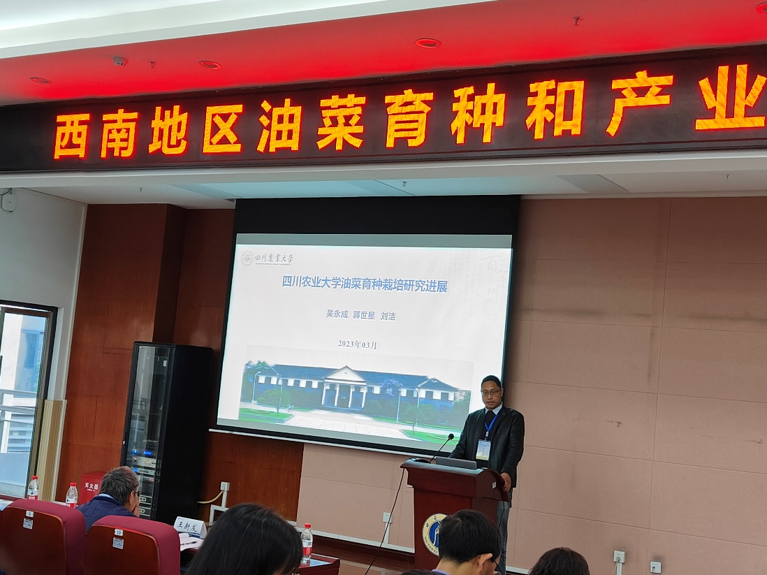 会上,吴永成教授代表我校油菜研究团队做了“ok138cn太阳集团529油菜育种栽培研究进展”主题报告。该报告主要介绍了我校油菜研究团队的历史、人员组成及近几年在油菜育种和栽培科研上的主要成果。同时,来自重庆、四川、贵州、云南、陕西的多位油菜领域代表专家围绕油菜育种、产业发展和油菜研究新技术资源共享等方面展开了专题讨论。