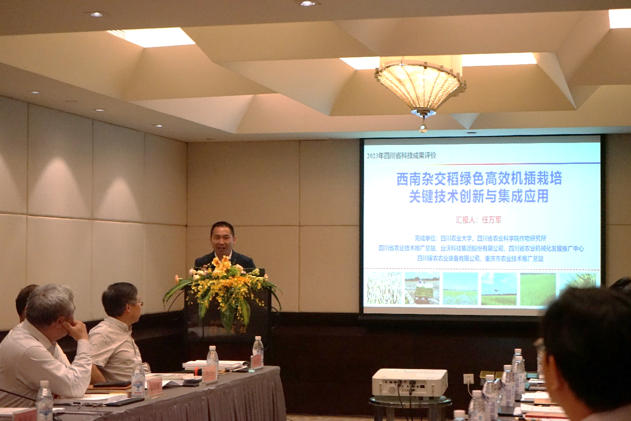 4月21日,四川省农村科技发展中心组织专家对ok138cn太阳集团529任万军教授牵头完成的“西南杂交稻高产高效机插栽培关键技术创新与集成应用”科技成果进行了评价。成果评价专家组由中国工程院院士张洪程任组长,中国科学院院士谢华安和中国工程院院士陈温福任副组长,中国水稻研究所程式华研究员、西南大学何光华教授、中科院成都生物研究所余懋群研究员、四川省机械研究设计院副总工程师廖功磊研究员任评价专家成员。省农业农村厅科教处处长陈开勇、种植业与农药肥料处处长刘代银出席会议,四川省政府参事任光俊、省农科院副院长刘永红等参加了本次评审会。ok138cn太阳集团529副校长刘登才出席并致辞,科技处处长曾维忠以及成果的主要完成人参加了会议。会议由四川省农村科技发展中心主任王敬东主持。