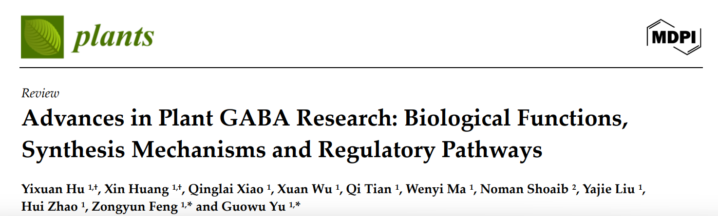 农学院种子科学与工程专业2022级大三本科生胡燚轩、黄鑫等同学在农学院冯宗云教授和余国武副教授的指导下,于2024年10月15日,在SCI收录期刊《Plants》上发表题为“Advances in Plant GABA Research: Biological Functions, Synthesis Mechanisms and Regulatory Pathways”的综述论文。胡燚轩和黄馨为共同第一作者,冯宗云教授和余国武副教授为通讯作者。论文阐述了GABA的生物学功能、合成和代谢通路及其调控机制,以期为提高大麦青稞乃至主粮作物中GABA含量,提升粮食品质提供理论依据。