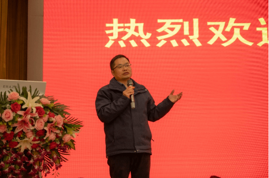 图为张江文对国光农化技术创新发展进行报告