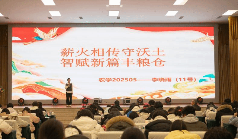 演讲比赛现场,15名参赛选手紧扣“川粮力量·稼穑农情”进行了声情并茂的演讲,大家立足“科技兴农、产业报国”的初心,从传统耕作到现代农机、从精耕细作到智慧农业,多维诠释对农学专业的理解与追求。选手们的演讲各有侧重、殊途同归:有人怀揣家族世代务农情结,立志以专业知识改良家乡土壤、提升作物产量;有人因现代农业科技展示萌生向往,立志深耕智慧农业领域建功立业;有人锚定国家粮食安全大局,将个人理想融入乡村振兴时代浪潮,畅谈通过产学研融合打通农业技术转化通道的青春构想。农学5班李晓雨《薪火相传守沃土,智赋新篇丰粮仓》的激情演讲,道出了新一代“新农人”的共同心声。一个个饱含温度的故事,一句句铿锵有力的誓言,串联起个人成长与国家使命,让“守好每一寸耕地、育好每一穗稻谷”的信念,深深扎根于青年学子心中。