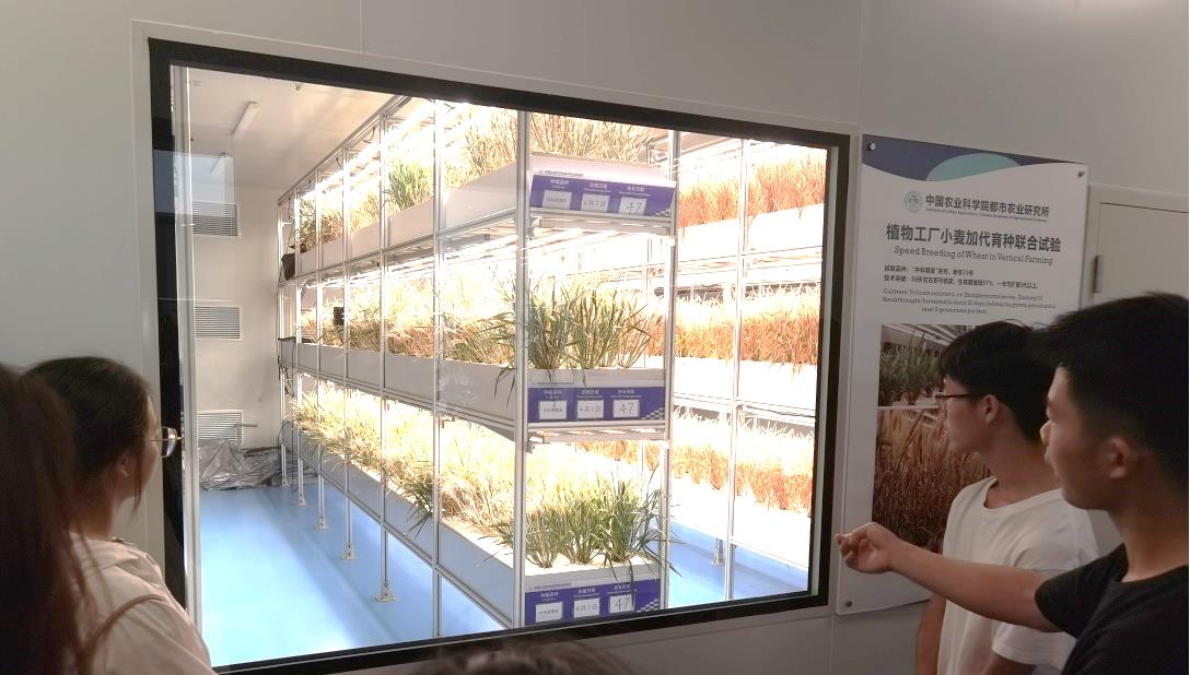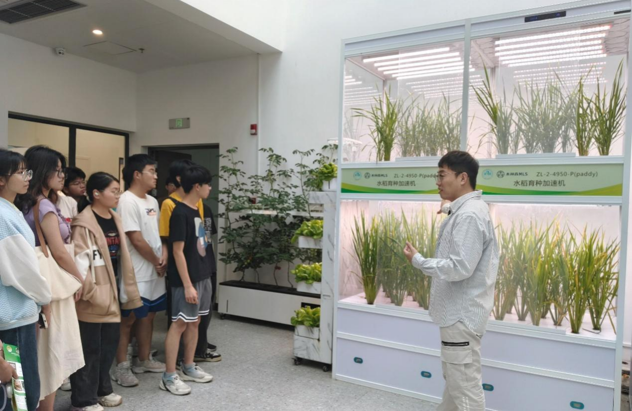 在该研究所的植物工厂加代育种重点实验室中,师生们参观了水稻、玉米、小麦等作物的育种加速机,该设备通过调控作物生长环境条件实现作物一年多熟的加代繁殖工作,缩短了育种进程、提高了育种效率。这种育种装备可以大大加速新品种的培育、推广和应用。同学们参观了大型智能化垂直农场植物工厂车间、了解了它的工作原理、流程、效率和发展前景。该研究所的马前磊博士向大家分享了自然光源分频节能利用技术、LED人工光源的优化技术及其在植物高效生产和品质提升方面研究和应用成果。参观活动将理论学习与生产实践生动地结合起来、激发了大家对专业知识的兴趣,增进了师生们对智能温室装备、智慧农业前沿研究和相关技术应用的了解,拓展了本专业学生的专业视野、启迪了对专业学习和未来发展的思考。