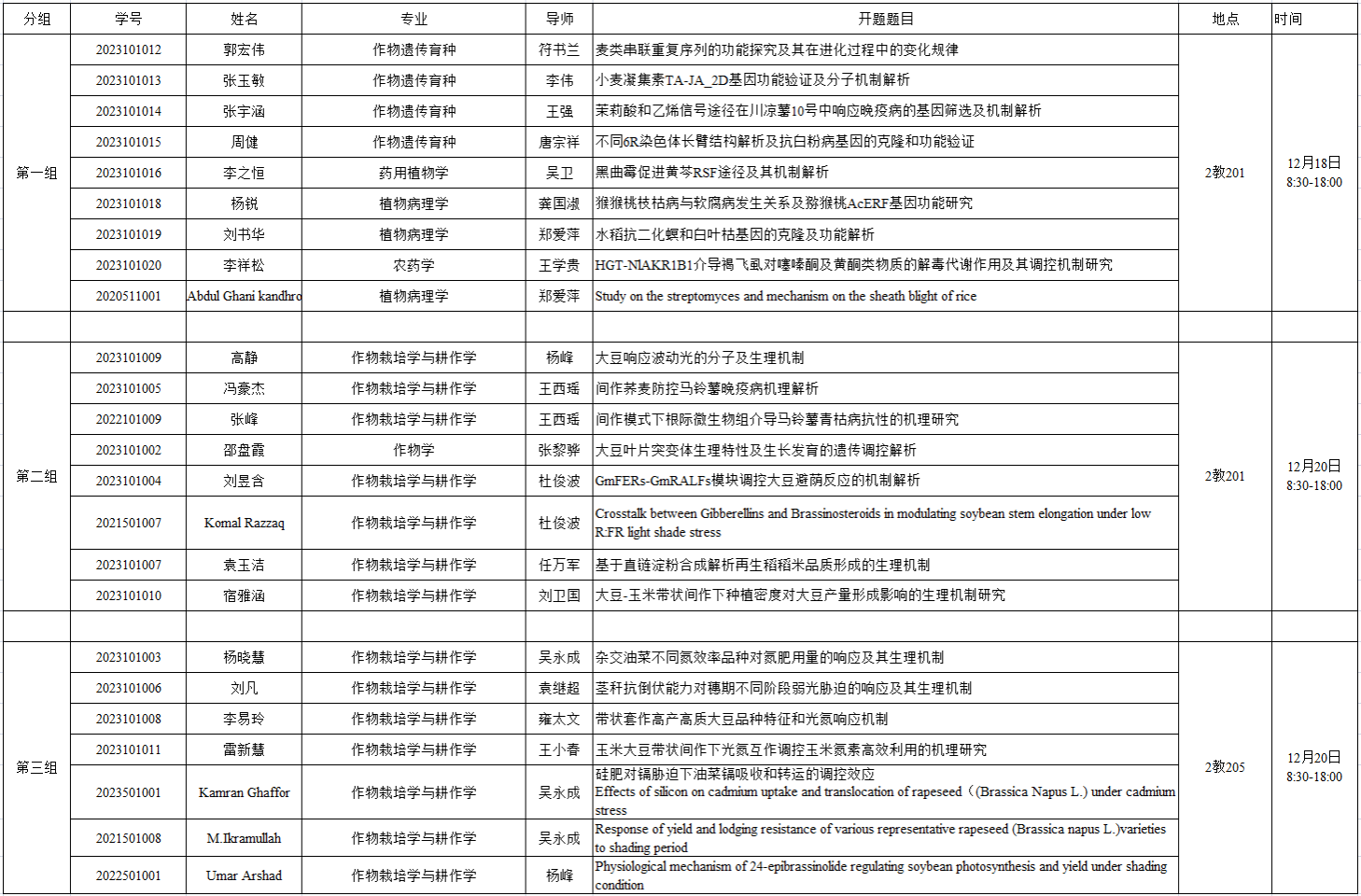 农学院2024年下半年博士研究生开题报告安排