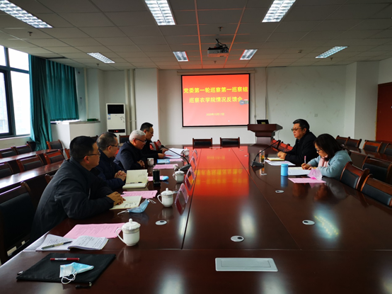 按照学校党委统一部署,2020年12月17日,学校党委第一轮巡察第一巡察组巡察农学院情况反馈会在7-405召开。