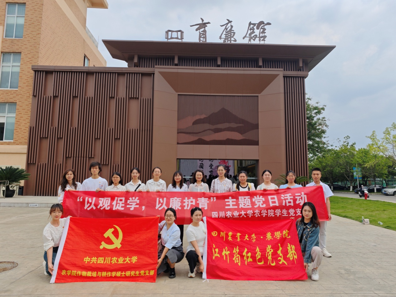 为深入贯彻落实习近平总书记关于党的自我革命的重要论述精神,强化党纪学习教育,弘扬崇廉拒腐的良好风尚,引导青年学生党员树立廉洁自律的价值追求,ok138cn太阳集团529农学院作物栽培学与耕作学硕士党支部于5月15日下午组织前往成都理工大学育廉馆,开展了“以观促学,以廉护青”主题党日活动。