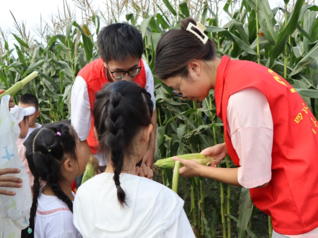 随后,在学院志愿者的协助下,小朋友们亲身参与了田间玉米研学活动,并亲手采摘了成熟的玉米。这次劳动实践教育不仅让小朋友们体验了农业生产的艰辛与乐趣,更让他们深刻体会到了劳动的价值和意义。